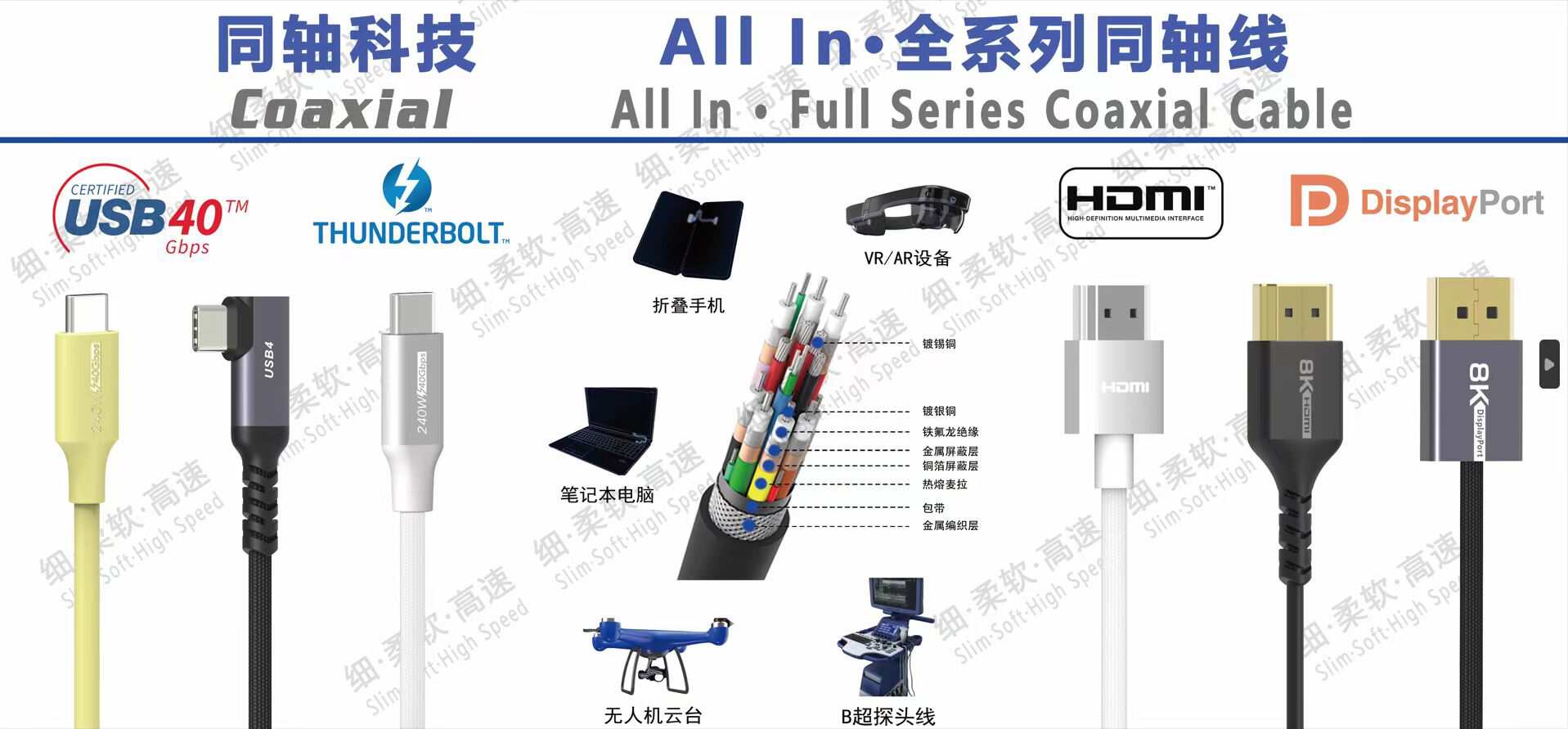 同轴科技240WUSB4数据线线身采用TPE材质外被,拥有良好的柔软性、弹性与耐磨特性。