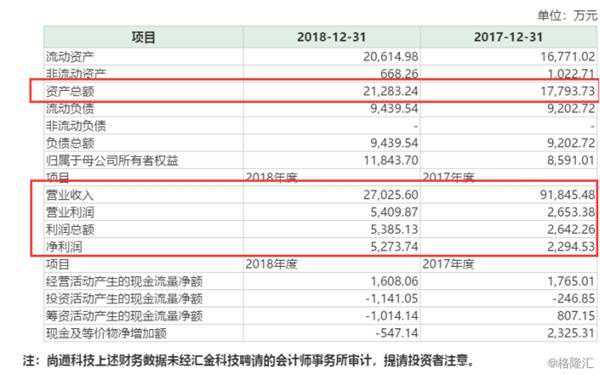 在业绩方面,截止到2018年尚通科技营收2.70亿元,较2017年2.42亿元同比上涨12%;而汇金科技的收购价格是5.94亿,尚通科技真实的资产在2.12亿元,可以说这是一次高溢价收购;