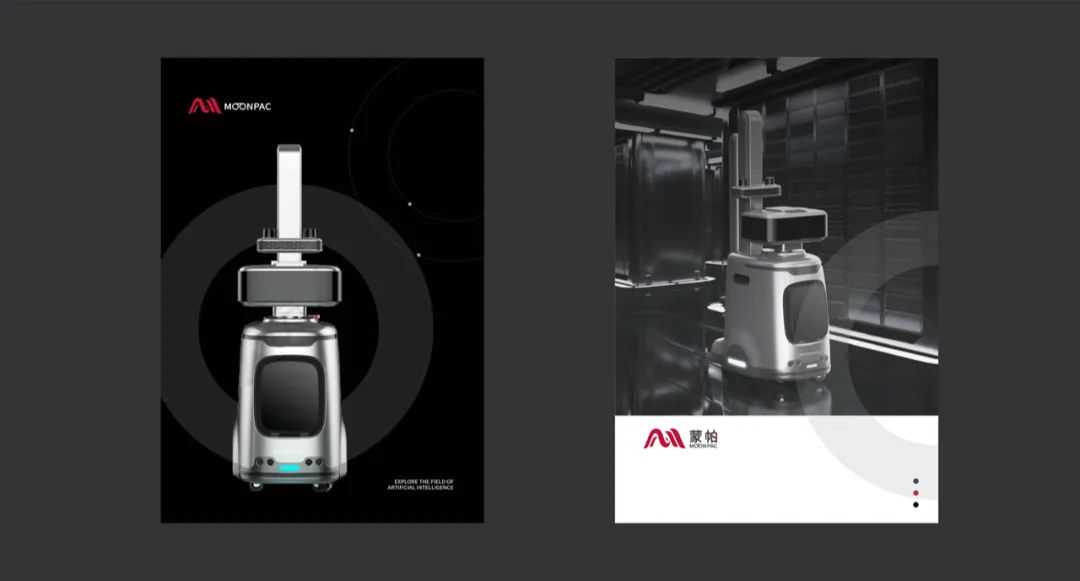 整个logo升级之后,品牌形象视觉语言高度统一,中文名称“蒙帕”中的红色元素体现品牌特征,英文名称中的机器人眼睛体现行业特征。