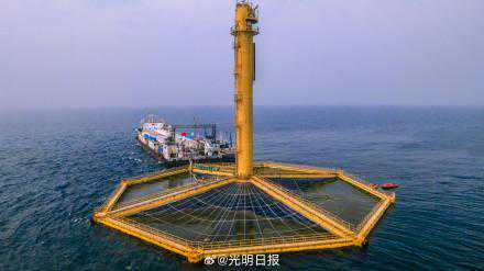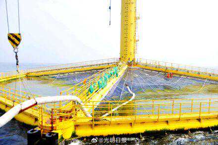 为打开我国深远海大规模渔业养殖的突破口,2017年,中国海洋大学等科研院所与青岛武船重工有限公司开始联合研制“深蓝1号”。“深蓝1号”,是周长180米、高70米、重约1400吨的网箱,可以沉入海中,不受风浪影响。
