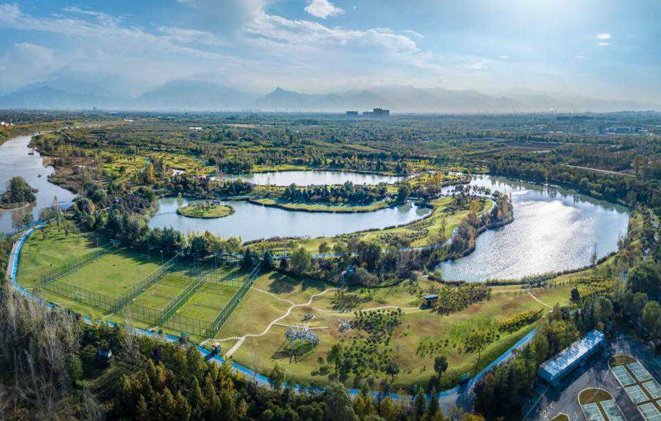 依托秦岭生态优势,围绕沣河、潏河、太平峪河等9条河流、湖泊资源,实现城市建设与生态本底有机渗透,打造“一半山水一半城”的山水共映理想城。