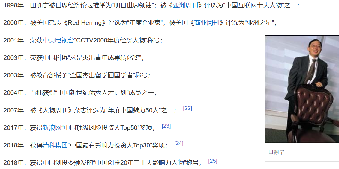 雷锋网创始人林军“他应该是中国互联网历史乃至中国商业历史上最具备理想主义情怀,但又还算有善终的人,这样的人很难得。田溯宁一生无数贵人相助,很大程度上是因为他的济世情怀和身上强烈的殉道者气质。”
