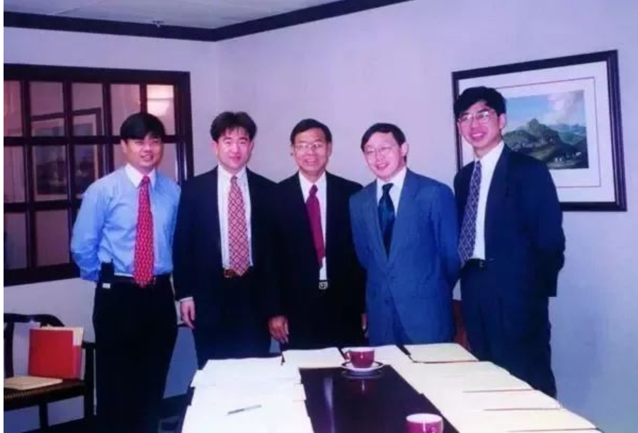 亚信在美国成立初期,田溯宁(左二)一行与中国前驻美大使李道豫等见面
