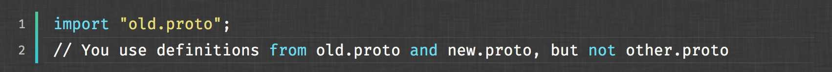 默认情况下你只能使用直接导入的.proto文件中的定义.然而,有时候你需要移动一个.proto文件到一个新的位置,可以不直接移动.proto文件,只需放入一个文件在老的位置,然后使用import转向新的位置:
