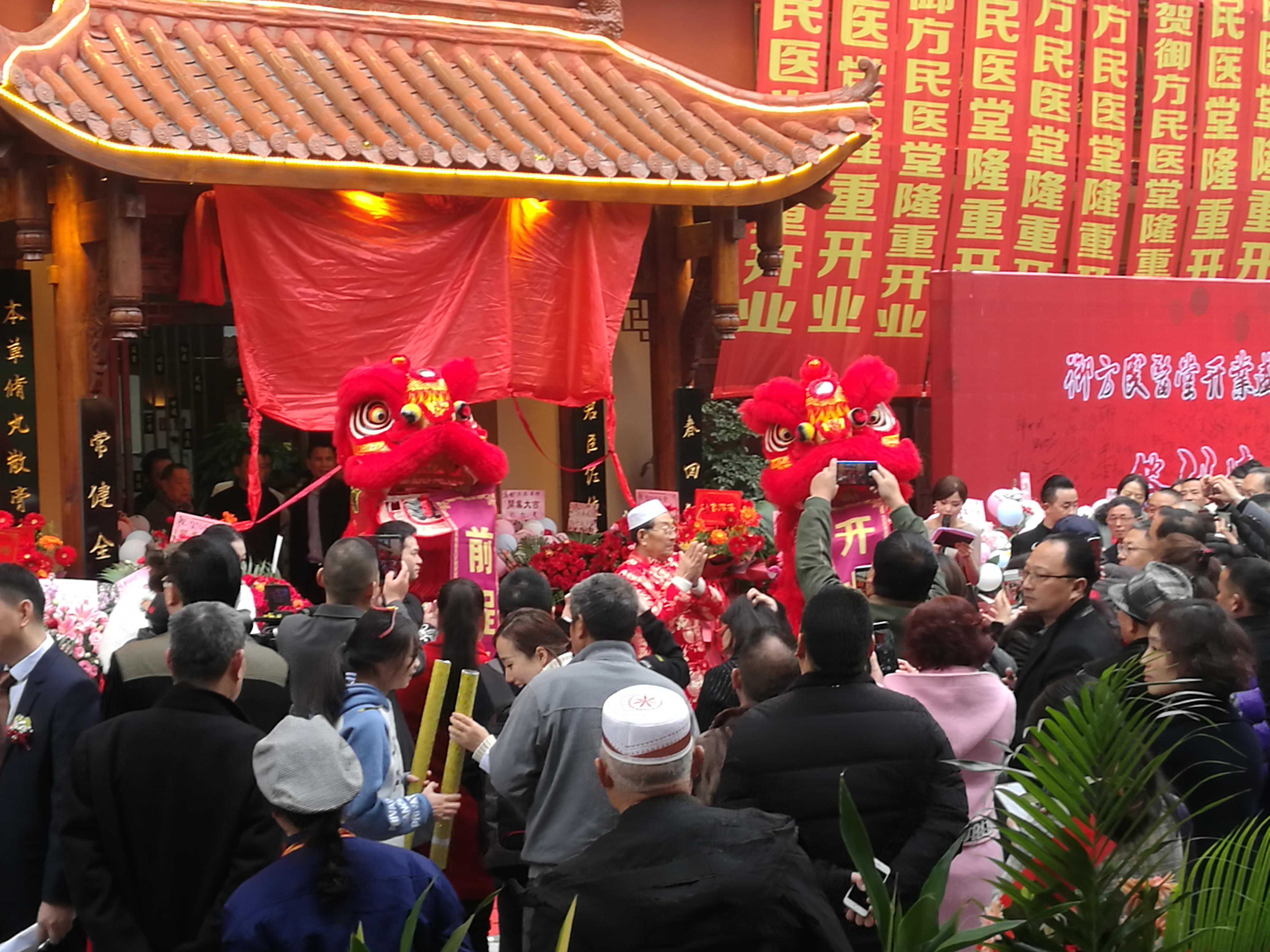仪式现场,黄静波黄老和御方民医堂总经理杨津师徒二人一起为祥狮点睛,随着祥狮觉醒、起舞、采青吐幅,现场掀起高潮,数百嘉宾观众高声欢呼。随后,各位贵宾共同为御方民医堂开业启幕剪彩,见证这一历史性时刻。