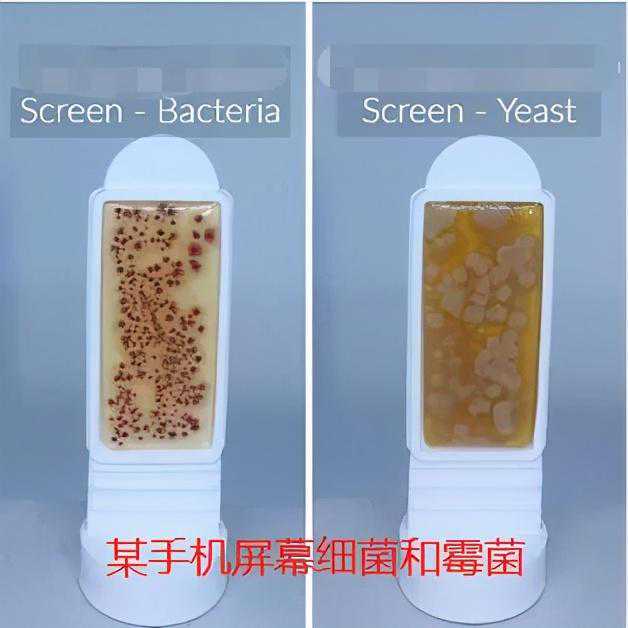 有研究人员用棉签擦了擦某款手机的屏幕和马桶圈,取样培养,测试细菌和霉菌的含量。