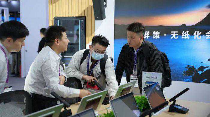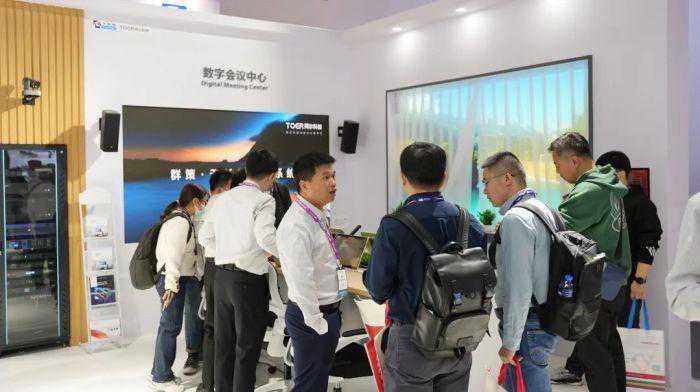 基于中小型会议和便携式会议两种应用需求,同尔科技带来了数字会议中心和专家会商室两大场景,完美复原企业数字会议现场,声光电通过中控和可视化平台联动,智能化会议吸引诸多客户驻足体验。