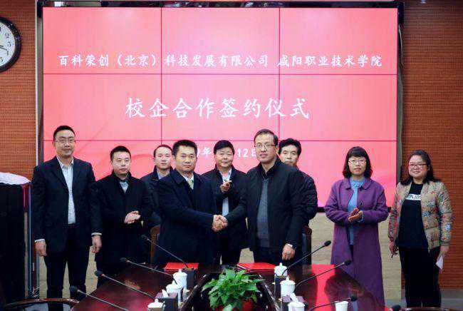 12月12日,咸阳职院与百科荣创(北京)科技发展有限公司举行校企合作签约仪式。学院院长杨卫军、副院长王辉,百科荣创科技发展有限公司董事长张明伯、百科荣创科技发展有限公司陕西区域总经理张垒出席仪式。