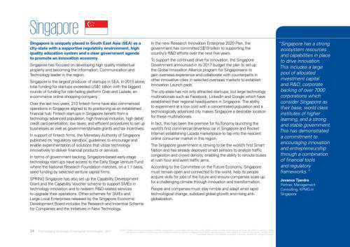 “在过去两年间,210家fintech企业在新加坡开始运作,符合其作为全球金融中心的地位。新加坡的fintech创企享有许多便利,包括国民科技水平高、金融包容性高、借记/信用卡渗透率高、税率低、建立公司流程简便高效以及政府/私人补助和税收激励政策。