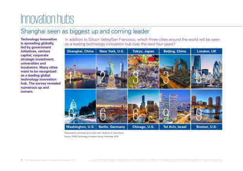 该份报告总结道,全球而言科技创新正在加速。美国、欧洲还有亚洲的一些城市,比如新加坡,正在成长为创新中心。