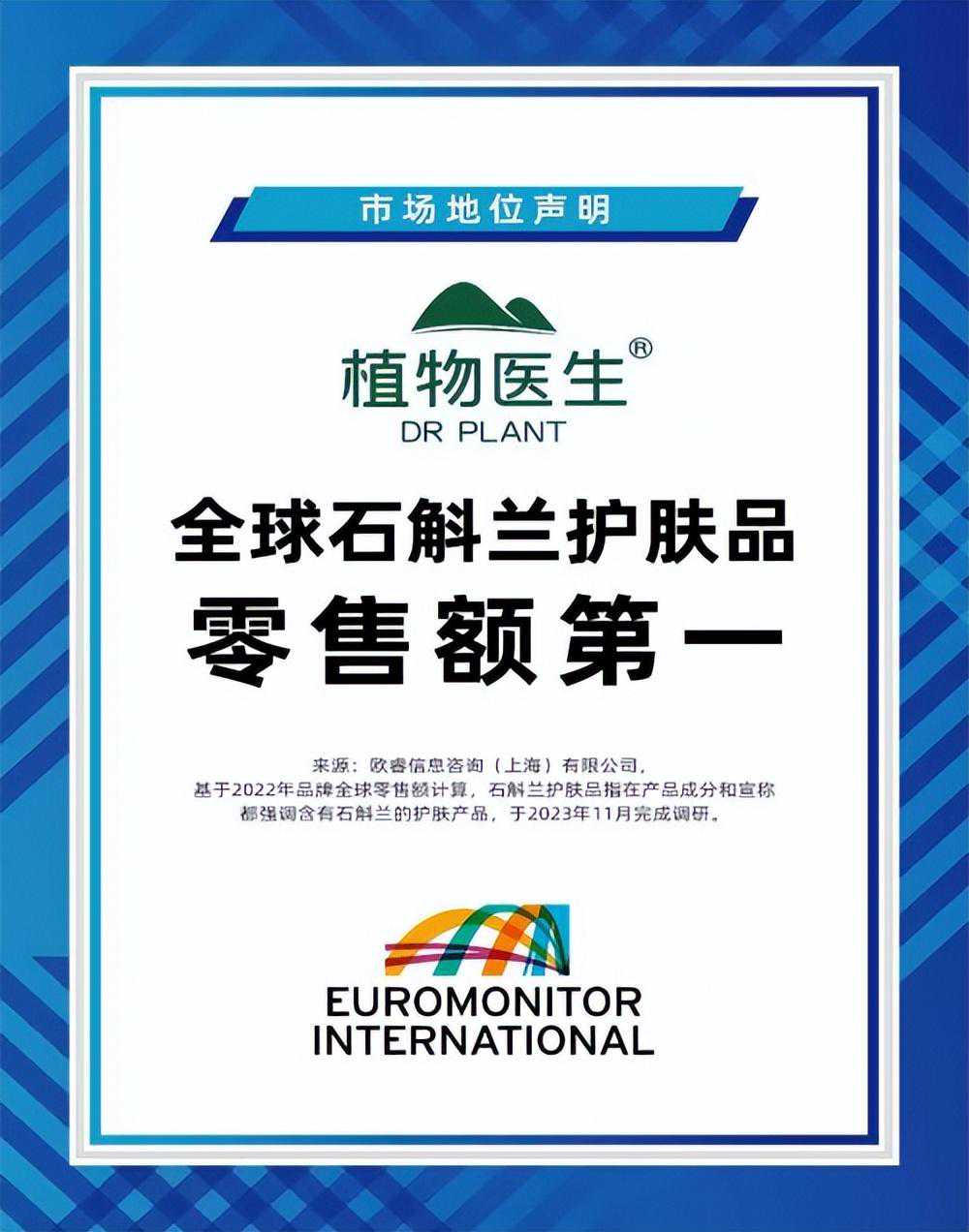 值得一提的是,植物医生品牌在石斛护肤品研发方面的科技创新力量不容小觑。据欧睿数据最新公布的报告,在所有发布产品成分和宣称都强调含有石斛兰的护肤产品的护肤品牌中,植物医生获全球石斛兰护肤品零售额第一。这是对植物医生在科技创新方面实力的肯定,也展现了品牌对科技研发的重视和投入。