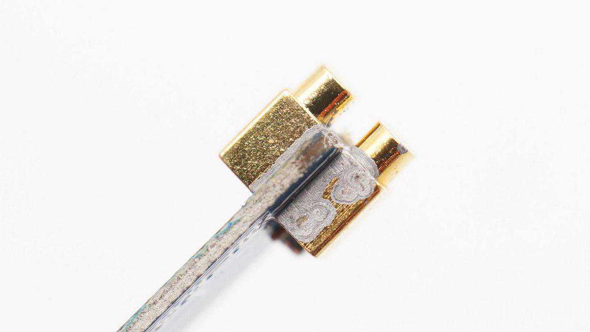 霍尔元件的FPC焊接至主板,焊点处有胶水加固。