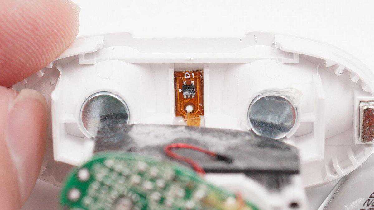 丝印C937的霍尔元件,通过感知充电盒盖打开/闭合时的磁场变化(霍尔效应),通知充电盒MCU,进而告知耳机与已配对设备连接/断开,实现开盖即连功能。