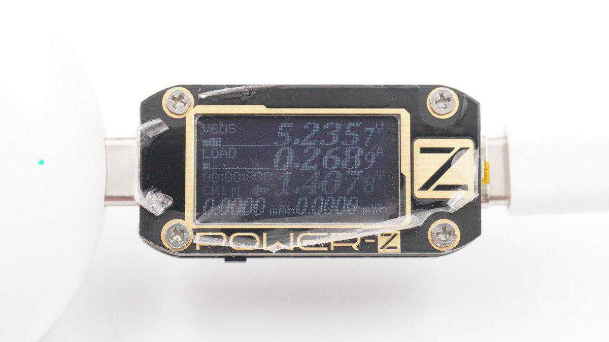 我爱音频网采用ChargerLABPOWER-ZKM001C便携式电源测试仪对奋达E2真无线蓝牙耳机进行有线充电测试,输入功率约为1.4W。