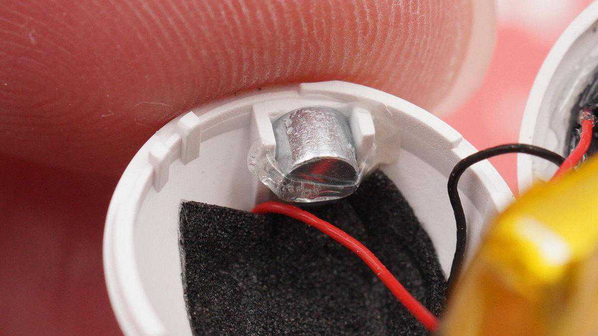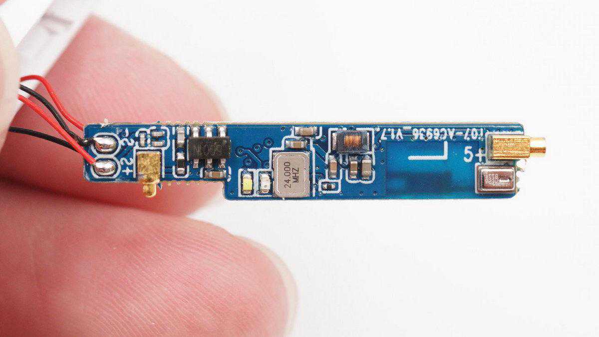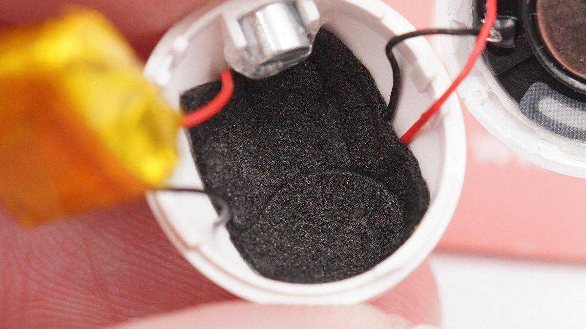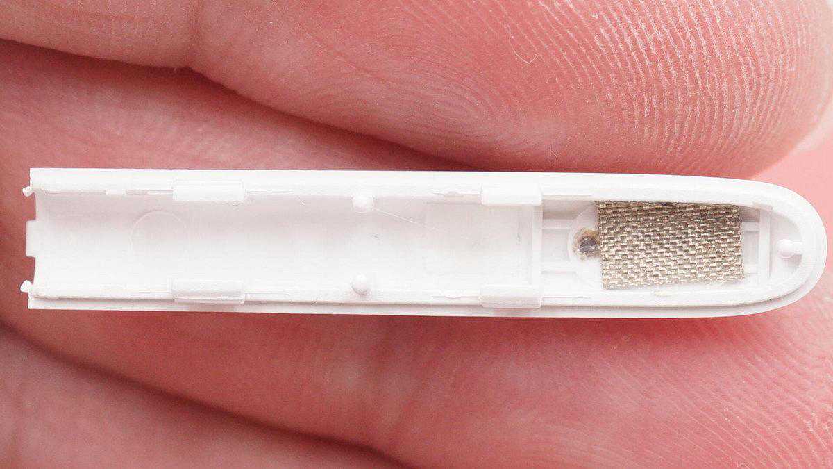 耳机柄内部结构展示,主板竖向放置,并非与耳机柄齐平。