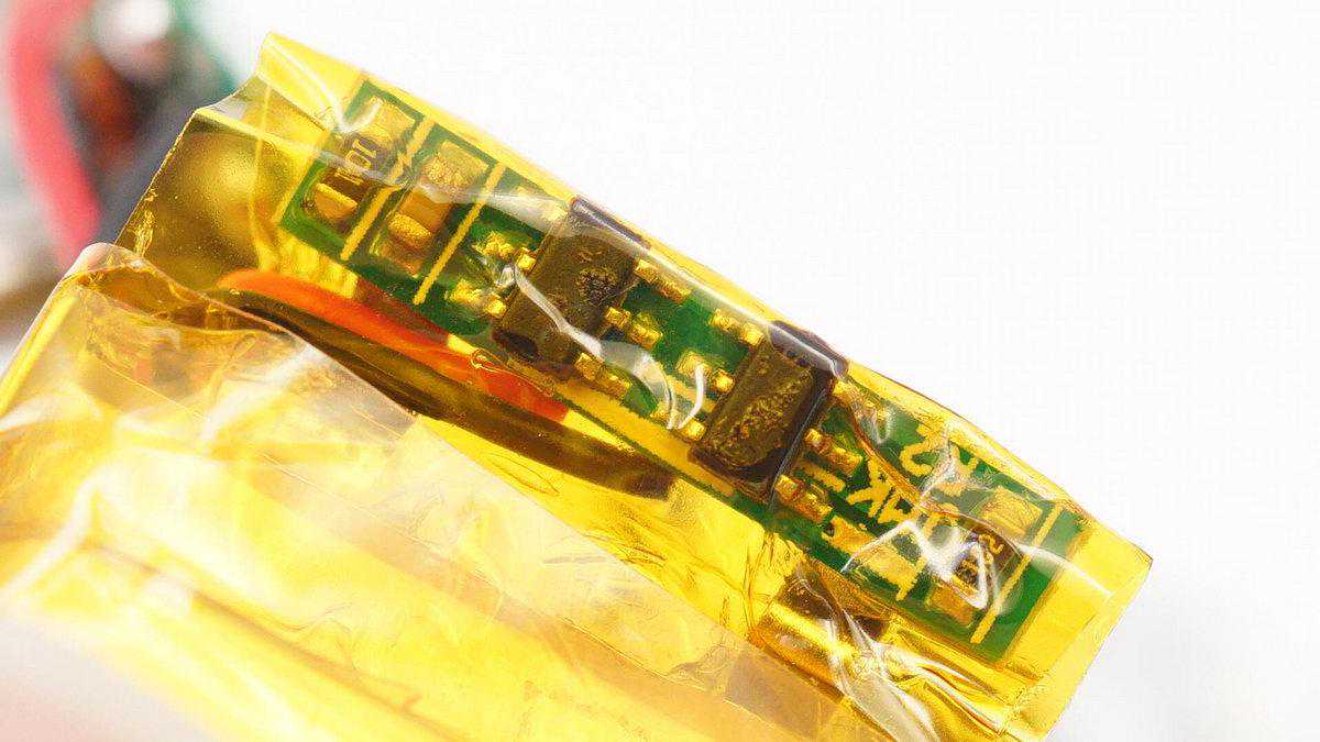电池保护板特写,负责电池的过充过放过流保护功能。