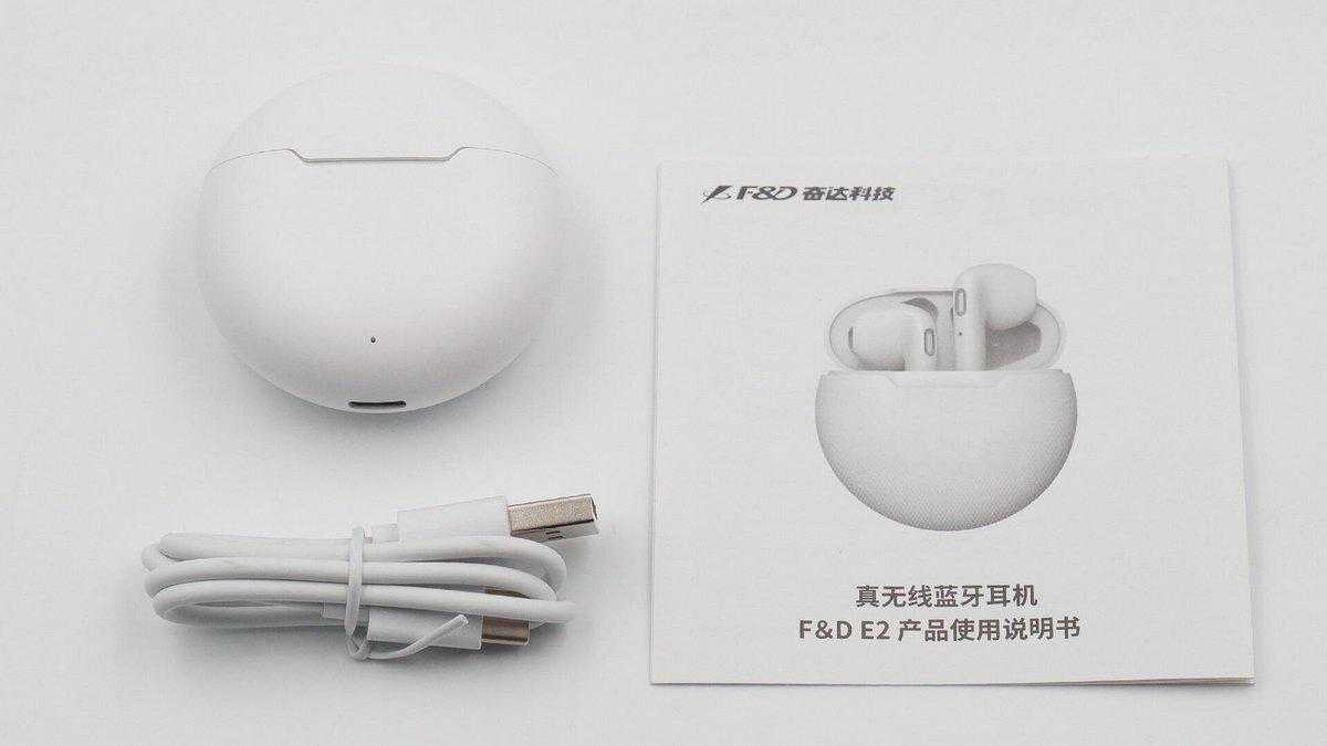 包装盒内物品包括:耳机和充电盒、充电线塞和产品使用说明书。