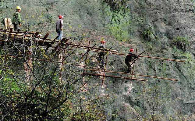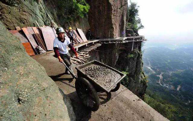 虽然现在大多数建筑都是靠着科技和机械化来修建,可在越接近大自然的地方,比如山崖峭壁,那可用的现代化工具可少得不得了。因此想要在山崖峭壁上修建,那只能靠人们的双手。来一场人与自然的“较量”。