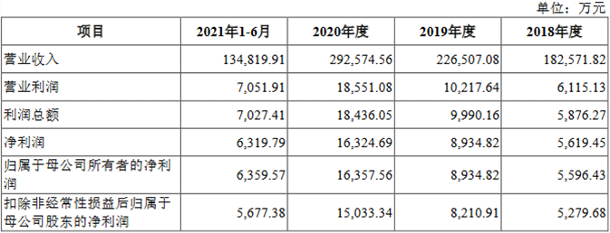 2018年、2019年、2020年和2021年1-6月,嘉环科技实现营业收入分别为18.26亿元、22.65亿元、29.26亿元和13.48亿元,实现归属于母公司所有者的净利润分别为5596.43万元、8934.82万元、1.64亿元和6359.57万元,实现扣除非经常性损益后归属于母公司股东的净利润分别为5279.68万元、8210.91万元、1.50亿元和5677.38万元。