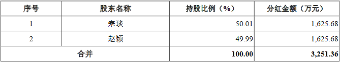 报告期内,嘉环科技只进行一次股利分配。2017年2月20日,公司召开股东会,一致同意向全体股东分配利润3251.36万元,由于股东宗琰与赵颖持股比例接近,各股东一致同意,在实际分配总金额扣除各股东应缴付的个人所得税合计数后的净分配额由宗琰、赵颖平均分配。