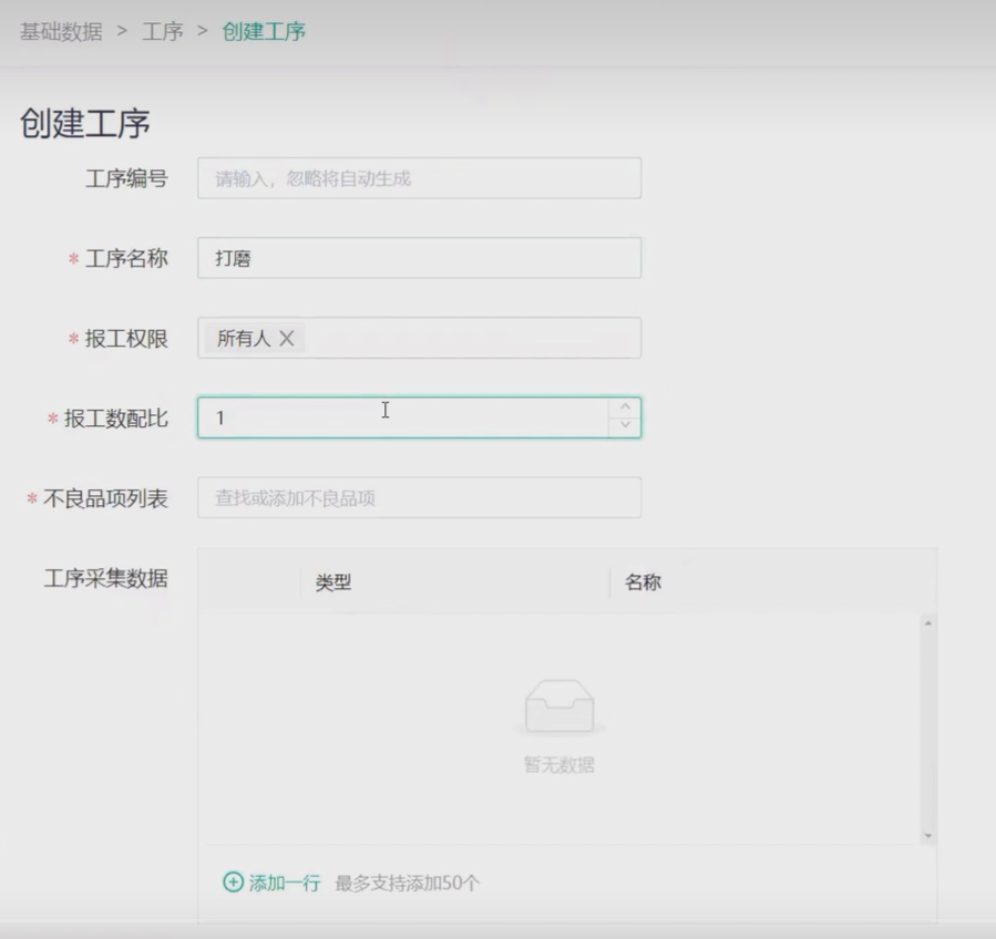 部门用户系统配置、单位、产品定义、不良品项、工序、工艺路线、绩效工资配置。