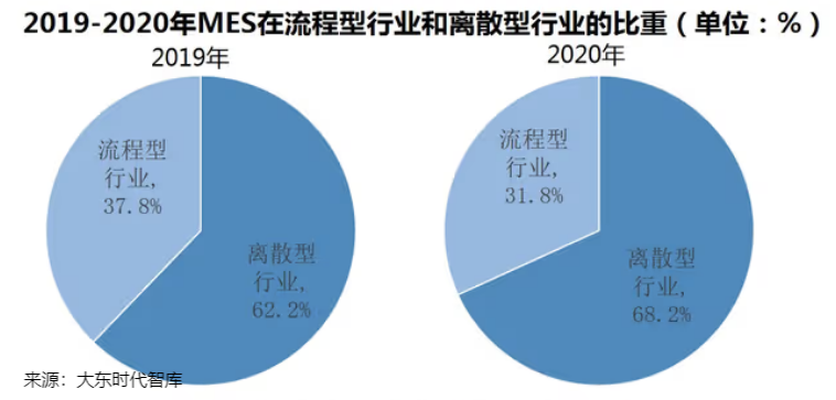 2.行业分析MES企业会专注于某一细分领域市场扎根做深,而在大东时代智库分布的《2021中国MES产业白皮书》中对流程型行业和离散行业的比重分析,以及细分行业应用情况分析,如图: