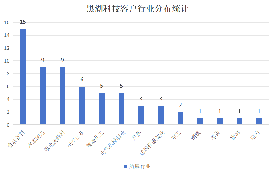 小编将上述的展示的标杆客户进行了行业分类如图,重点布局在食品饮料行业: