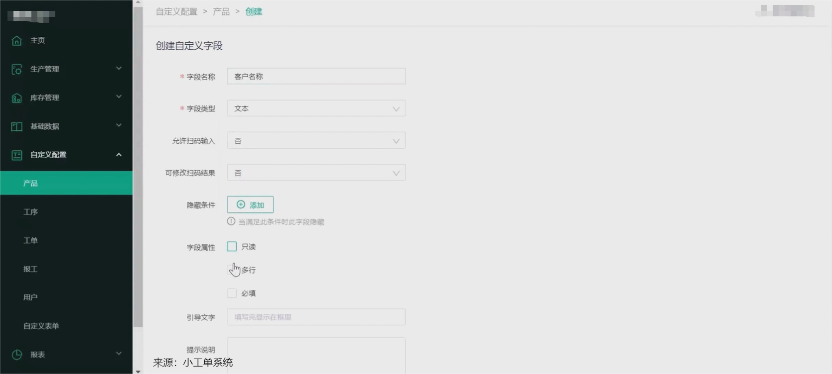 添加自定义字段、自定字段类型、报工表单提交校验规则、自定义表单、自定义编号规则。