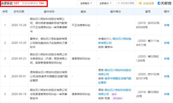 公开数据显示,密封科技近年来频繁陷入纠纷诉讼之中。