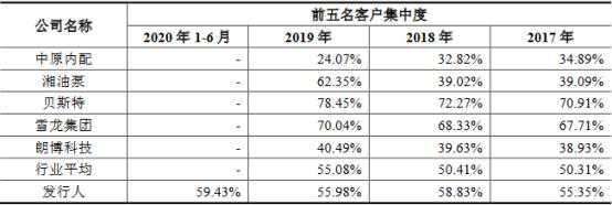 2017年至2019年前五大客户集中度高于同行业公司平均值