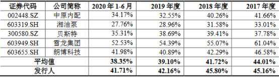 过去三年及一期,中原内配、湘油泵、贝斯特、雪龙集团和朗博科技5家同行业可比上市公司的资产负债率平均值分别为27.64%、25.18%、25.81%和25.83%;流动比率平均值(不含朗博科技)分别为2.42、2.45、2.96和4.36;速动比率平均值(不含朗博科技)分别为1.95、1.84、2.25和3.69。