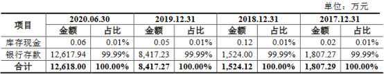 过去五年及一期各期末,密封科技的货币资金分别为1035.11万元、2267.32万元、1807.29万元、1524.12万元、8417.27万元和1.26亿元,货币资金余额占流动资产比例分别为6.55%、10.73%、5.53%、4.48%、19.59%和28.06%,货币资金主要是银行存款。