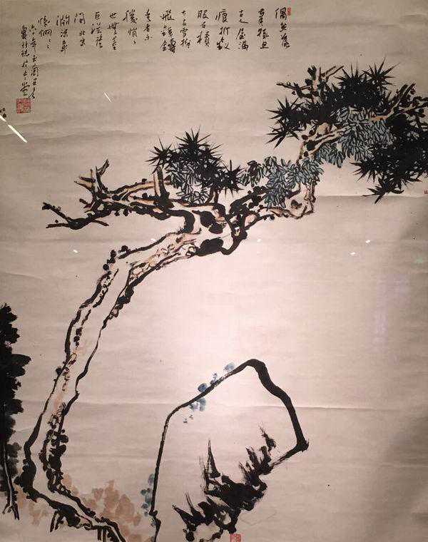 点评:潘天寿120余件纤毫毕现的书画真迹的震撼之处自不必赘言,而其中一由《松石图》的画中心标着的数字,述说着“黑画”的身份,于细微处给观者以震撼与反思。