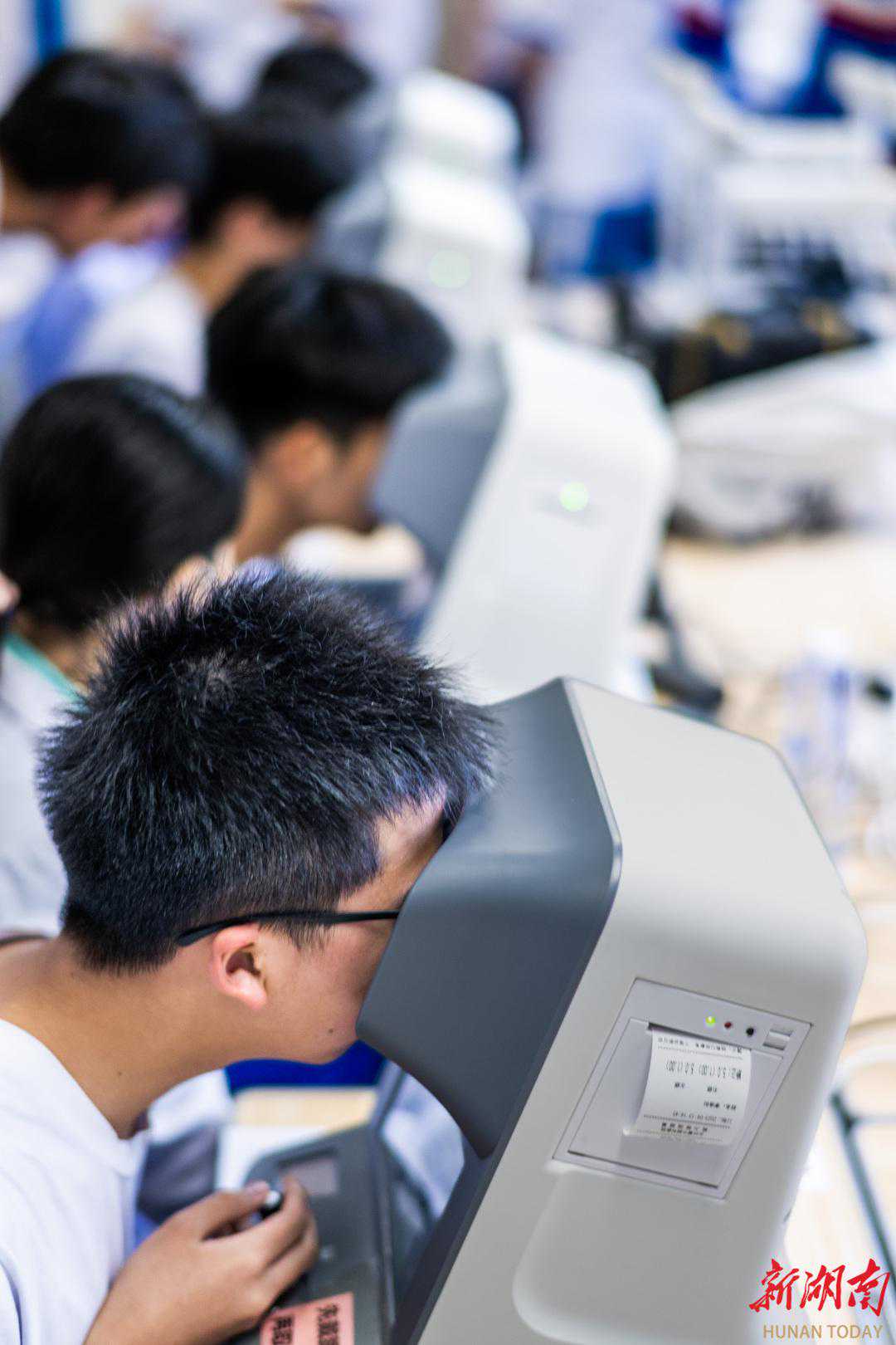 4月17日,雅礼书院中学学生在使用亮视嘉ai视力表进行视力检测。曾少军摄