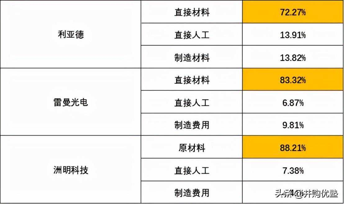 从成本结构来看,一块LED显示屏,原材料占比高达70%以上,LED灯珠/芯片占比50%、PCB板10%、驱动IC占比10%、封装器件及其他(5%)等。制造费用和直接人工占比较低。