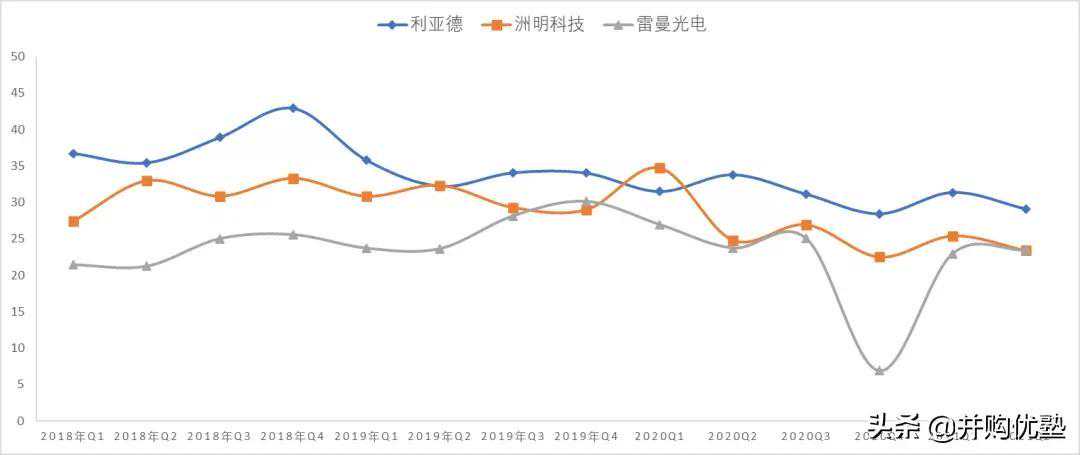 毛利率方面,利亚德(33.95%)>洲明科技(28.85%)>雷曼光电(23.42%)。