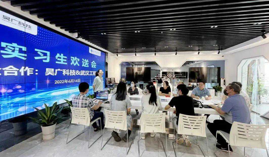 6月14日下午,昊广科技在公司展厅举行了“校企合作实习生欢送会”,昊广科技董事长陈天来、总经办总经理温水生、董事长助理谢丽红、副总经理黄文彬及相关部门同事参与,武汉工程大学计算机科学与工程学院易国洪副教授及电子信息专业实习生小组一起参加了本次会议。