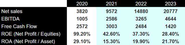 市场预测雾芯科技未来两年的惊人收入增长,预计其净销售额将从2021年的95亿元增加到2023年的200亿元。此外,投资者预计2023年的收益将达到两位数,自由现金流接近14.2亿元: