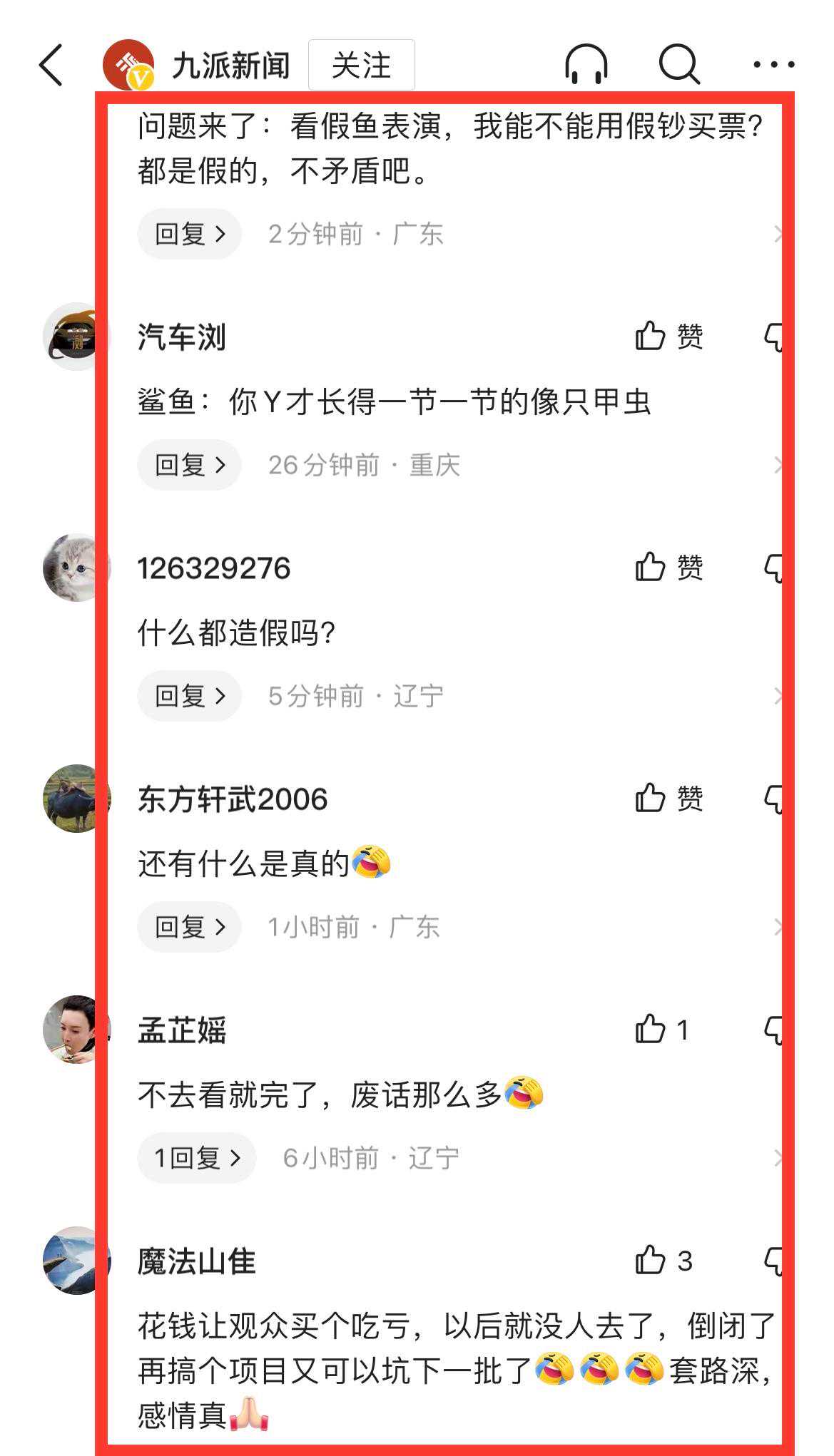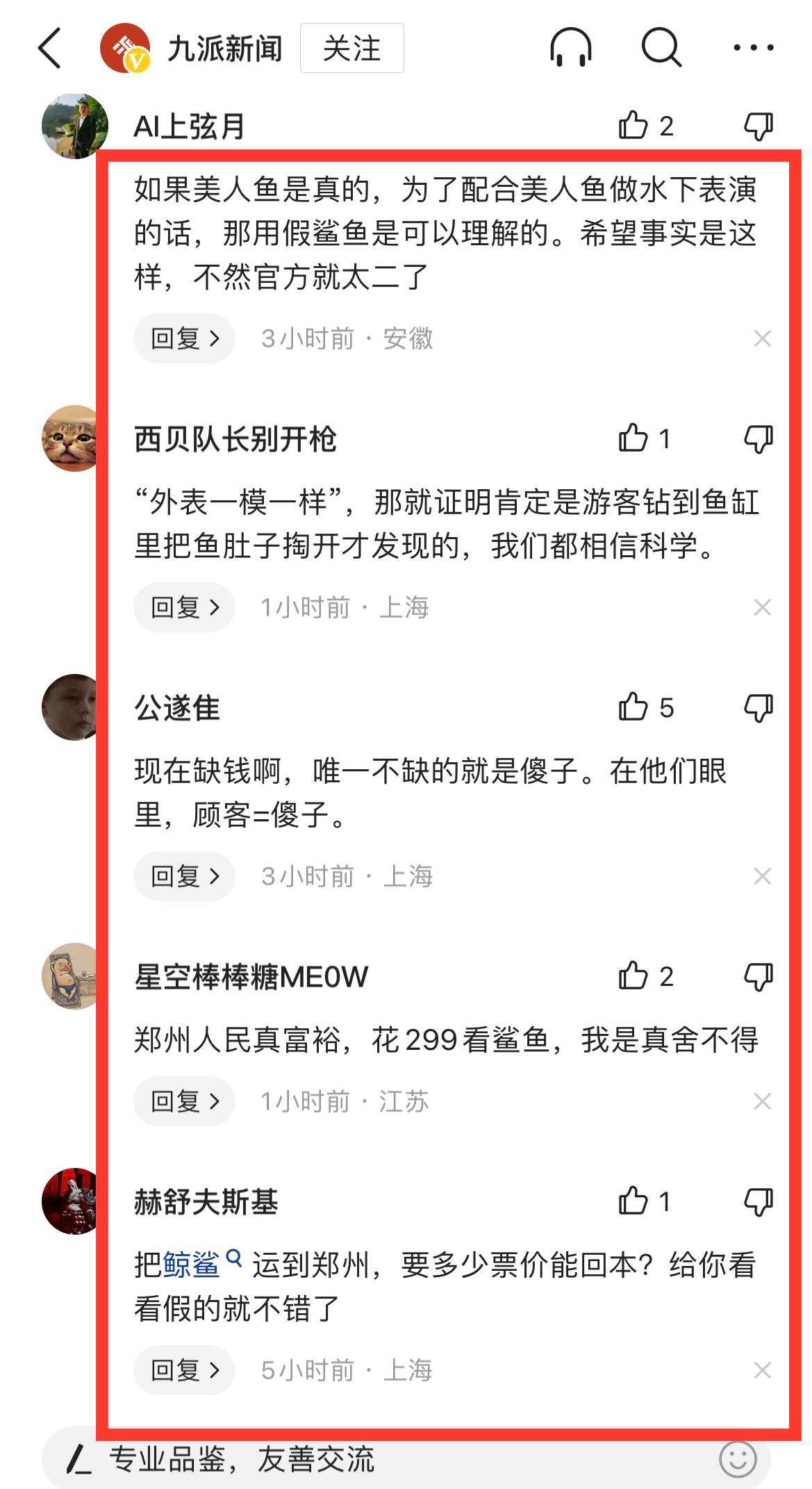 1、a网友反问:用假鲨鱼替代真鲨鱼,没关系,但请别用“海洋馆”,在名字上误导消费者,这是虚假宣传。