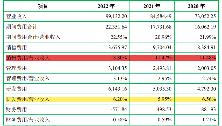 值得注意的是,近年来,森峰科技在销售方面投入很大。2022年,公司销售费用突破一亿元,同比增长率为40.93%,高于营业收入的增速。此外,2020年至2022年,公司的销售费用率远高于研发费用率,且高于可比行业以及行业平均水平。
