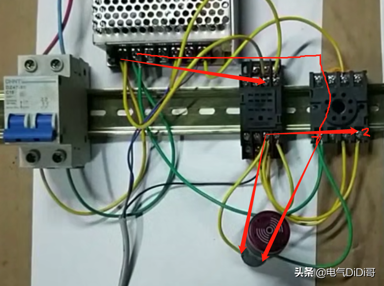 假设:左边是自己家,右边是隔壁老王家,这时你在外地打工就自己媳妇在家,然后隔壁老王在家,这个隔壁老王心眼多,他有可能到你家去,那么这种情况我们就需要做一个报警延时电路。