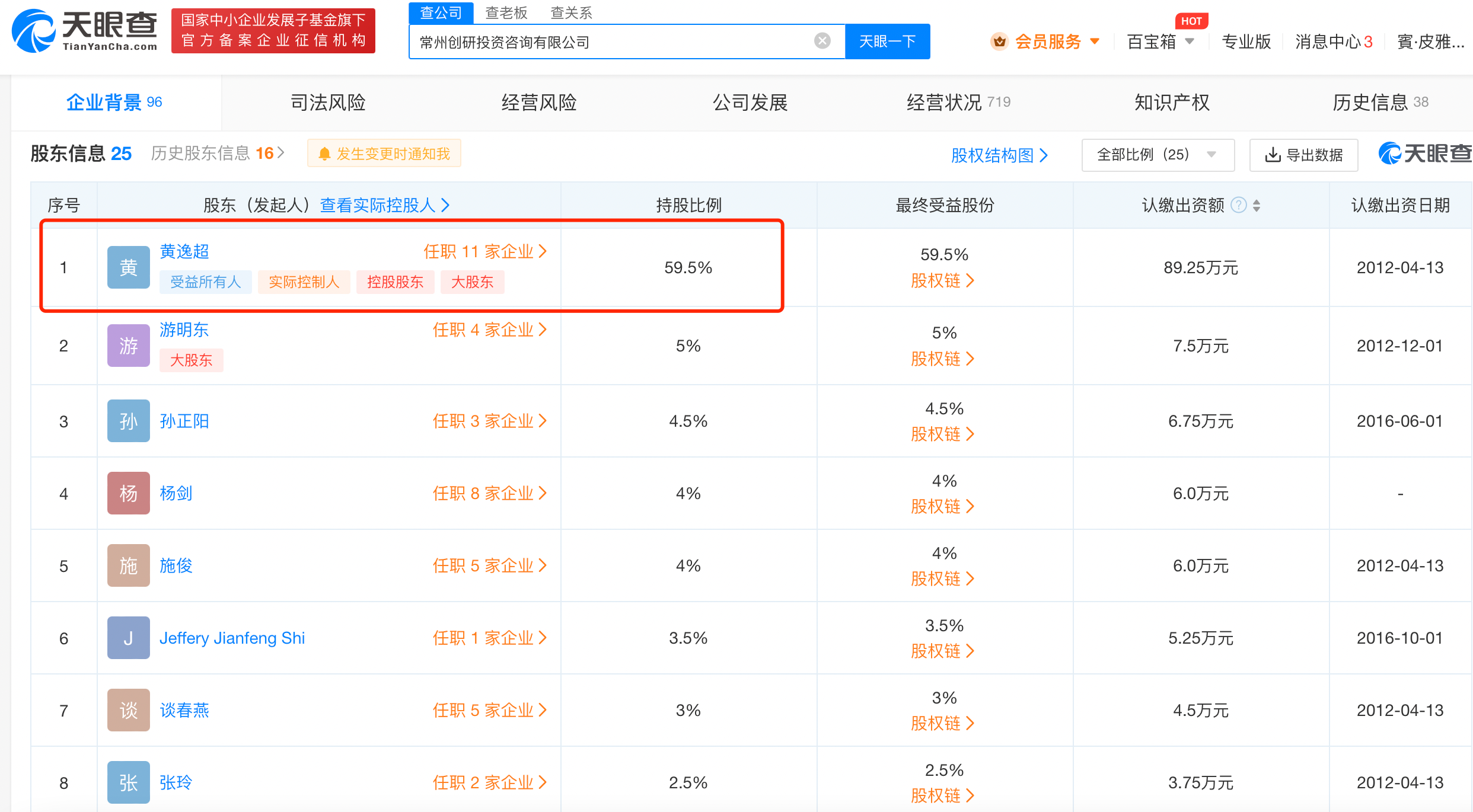然而就此当口,精研科技的控股股东、实控人之一致行动人、员工持股平台常州创研却突然宣布减持。根据此前的公告,持有公司股份4.78%的股东常州创研拟在未来6个月内减持不超过3%的持股。而天眼查显示,常州创研的实控人为黄逸超,持有常州创研59.5%的股权。