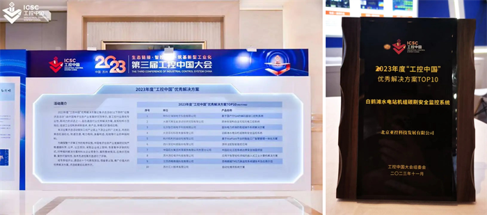 其中白鹤滩水电站机组碳刷安全监控系统,荣获2023年度“工控中国”优秀解决方案TOP10。