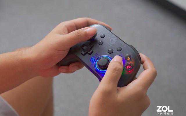 由于现在的电视尺寸越来越大,坐在电视机旁玩游戏显然是不现实的,因此无线手柄就是这个场景的最优选择,例如盖世小鸡T4PRO,不仅支持三模全平台,还配备了陀螺仪,原生支持任天堂Switch主机。