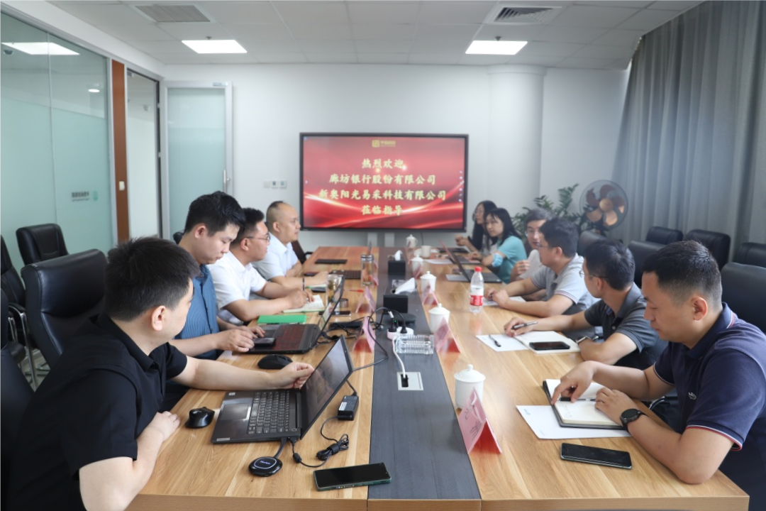 8月4日,廊坊银行股份有限公司数字银行部总经理李晓彪、项目经理伍原、风险经理蒋玲琴,新奥集团股份有限公司质采智购总经理朱亮亮、供应链产品总监陈国军、仓配运营总监纪洲等一行领导莅临河北平普科技有限公司(简称:平普科技)考察交流,平普科技董事长王晓磊、副总经理郝林、运营中心副总经理李晓飞等公司领导热情接待,双方就农信体系建设、农业供应链、集采集销合作等内容进行座谈交流。