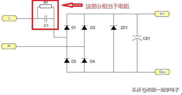 这个电流经全波整流电路整流后,送到稳压二极管稳压,限制最大输出电压,达到降压目的