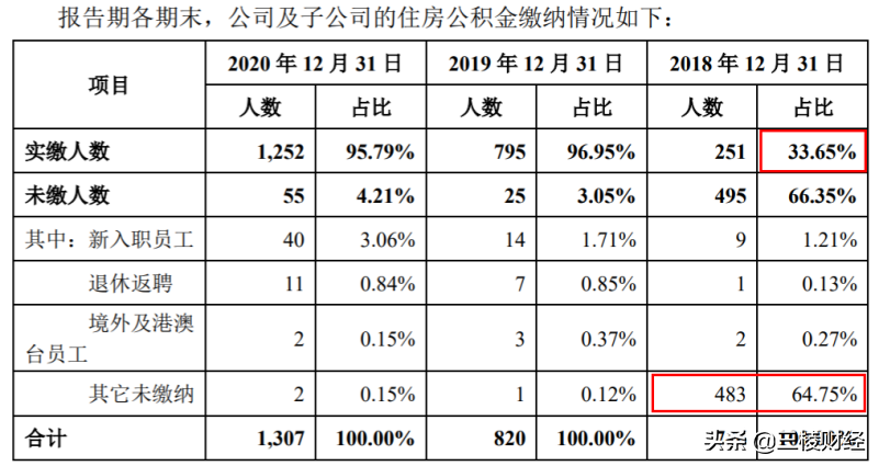 但2018年,公司仅给33.65%的员工缴纳了公积金,虽在后面两年有所改善也并未受到相关部门的处罚,但很明显,公司在之前很长的时间侵害的大多数员工的应得利益,没有给予员工国家规定的保障。