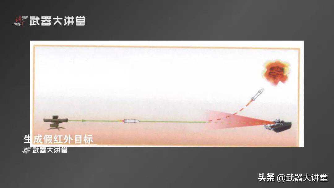 简单的来说就是该光电干扰系统可以产生一对酷似导弹后部的跟踪应答信标的两个假图像,使制式有线制导的反坦克导弹的跟踪器受骗打击错误目标,基本上能使西方国家大多数反坦克导弹的命中概率降低75%~80%。