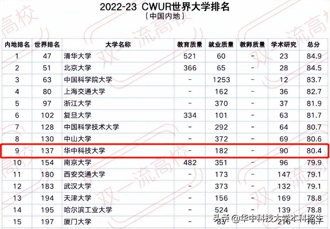 在世界大学排名中心(CWUR)2022-23世界大学排名中,位列中国内地高校第9,世界排名第137;