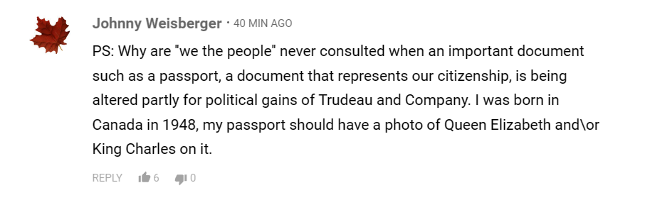 对此,联邦政府今天解释说,新的加拿大王室徽章(取代了十字架和百合花等宗教象征,改为枫叶和雪花)发布时间太晚,未能包含在护照的重新设计中。
